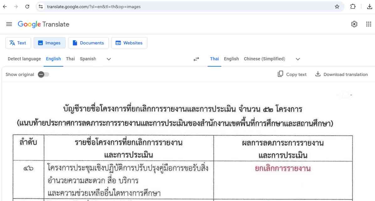 ยกเลิกการรายงาน 52 โครงการ ตามนโยบายลดภาระงานครู เพื่อให้ครูและบุคลากรทางการศึกษาได้มุ่งเน้นการจัดการเรียนการสอนและพัฒนาผู้เรียนได้เต็มศักยภาพ และมีประสิทธิภาพ สอดคล้อง สพฐ. นโยบายเรื่อง ลดภาระการประเมินของสถานศึกษาและปรับลดภาระงานที่ไม่จำเป็นหรือซ้ำซ้อน ประกาศเมื่อ 25 กรกฎาคม 2568